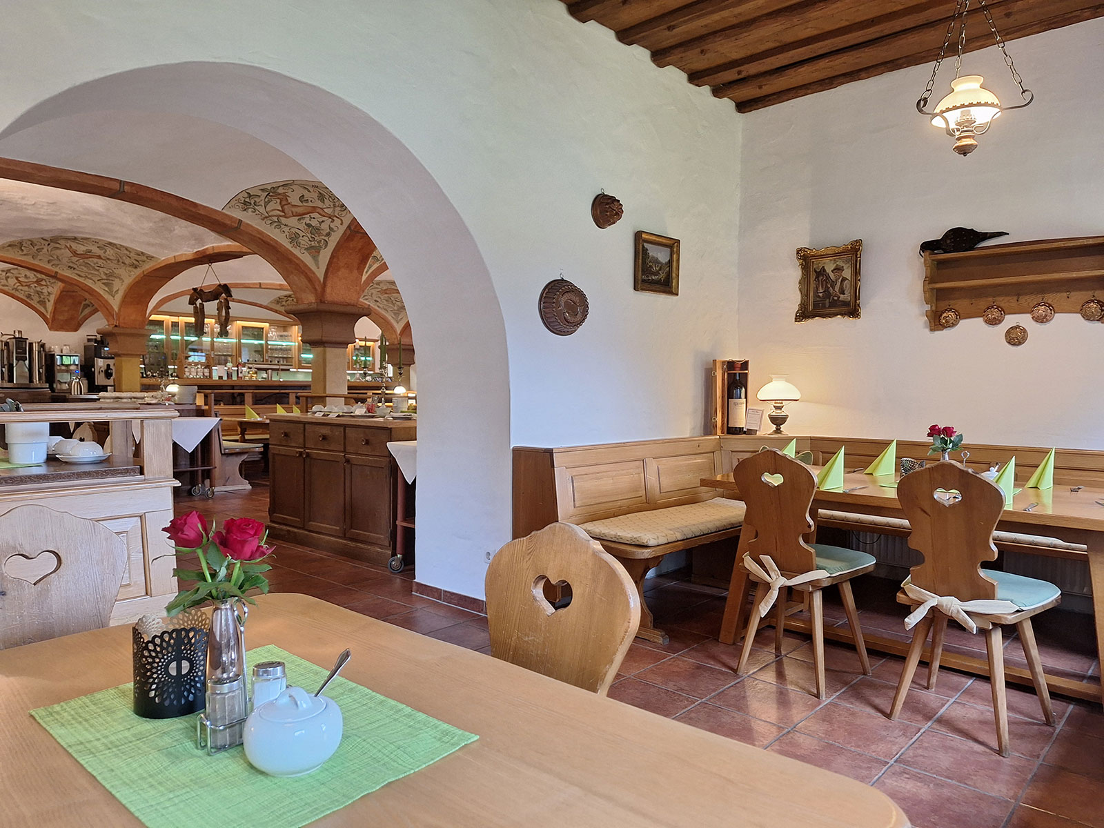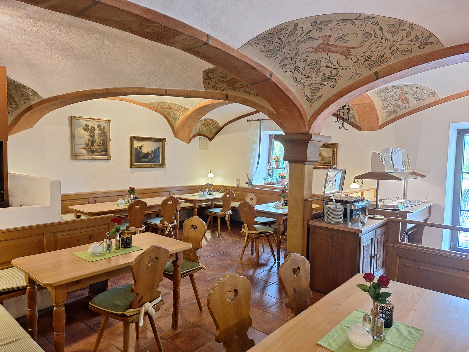 Im Restaurant können Sie Lüftlmalereien betrachten, die von einem früheren Besitzer liebevoll restauriert wurden und von uns laufend gepflegt werden.